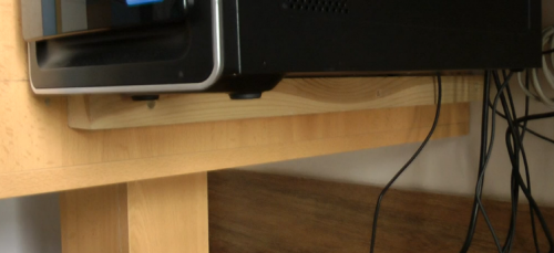 El uso de dos listones permite que haya distancia suficiente con respecto al tablero de escritorio como para poder introducir la mano, ya sea (como en el caso del ejemplo) para acceder al botón de encendido, como para sacar y meter la torre con facilidad. Asimismo, siempre es positivo dejar aire alrededor de la CPU para una correcta ventilación.