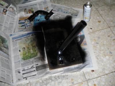 Pintar es uno de los últimos pasos y, en todo caso, es opcional (de ahí que no se haya incluido la pintura en la lista de materiales necesarios). Sin embargo, pintando los tubos de PVC podremos integrar la estructura que estamos realizando con el color de la silla de ruedas, aportar colorido y, sobretodo, librarnos del color gris propio del PVC. Nosotros optamos por el color negro, que tiene la ventaja de combinar con una gran gama de colores.
