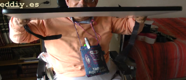La solución consiste en adaptar un tablero de madera al tamaño de la silla y al cuerpo del usuario. Asimimo, puede colocarse o no en función de las necesidades del usuario, ya que no está fija a la silla, sino atada con unas correas de velcro.