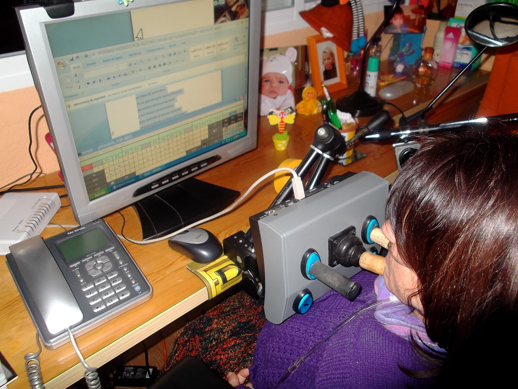 Adaptación para suplir todas las funcionalidades del ratón y poder manejar las funciones básicas de movimiento por pantalla y teclado de barrido. Se maneja con la barbilla.