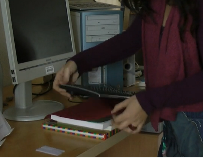 Se trata de una solución para adecuar la altura del teclado a las necesidades de su usuario, mediante algo tan sencillo como apilar unos libros relativamente grandes. Además, para evitar que el teclado pueda moverse involuntariamente por un movimiento espástico, sobre los libros se colocará una alfombrilla de cocina antideslizante.