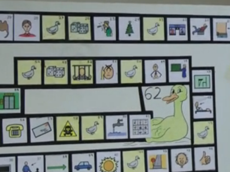 Se trata de una adaptación del tradicional juego de la Oca a un tamaño más fácil de ver, con iconos sencillos o especialmente significativos para las personas con las que se va a jugar.