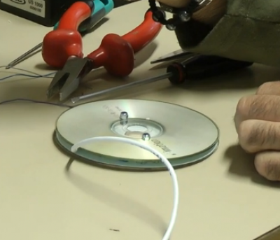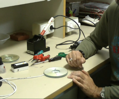 Se trata de un pulsador construido a partir de dos CD, cuya altura y configuración permiten que sea empleado por una persona sin fuerza en las manos o con dificultades para levantar las manos y separarlas de la mesa. Este tipo de pulsador contribuye a reducir las barreras para el acceso al ordenador.